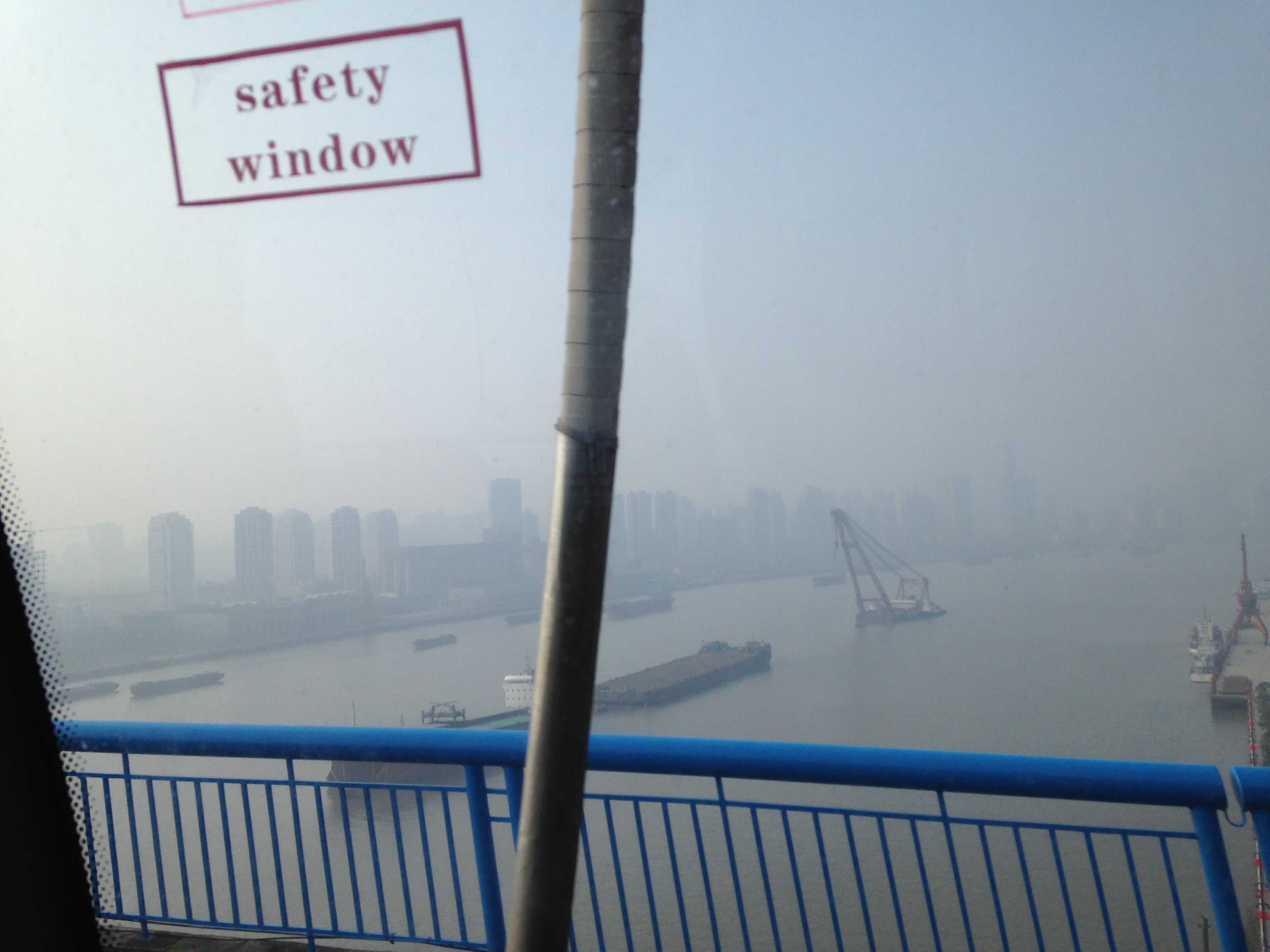 A view of the Huangpu River from the Tech team bus on its way to practice. The smog is considerable throughout the city and significantly limits visibility. The air quality index on Thursday topped out at 199. On the spectrum of air quality categories, it’s at the top of “unhealthy” and just below “very unhealthy.”