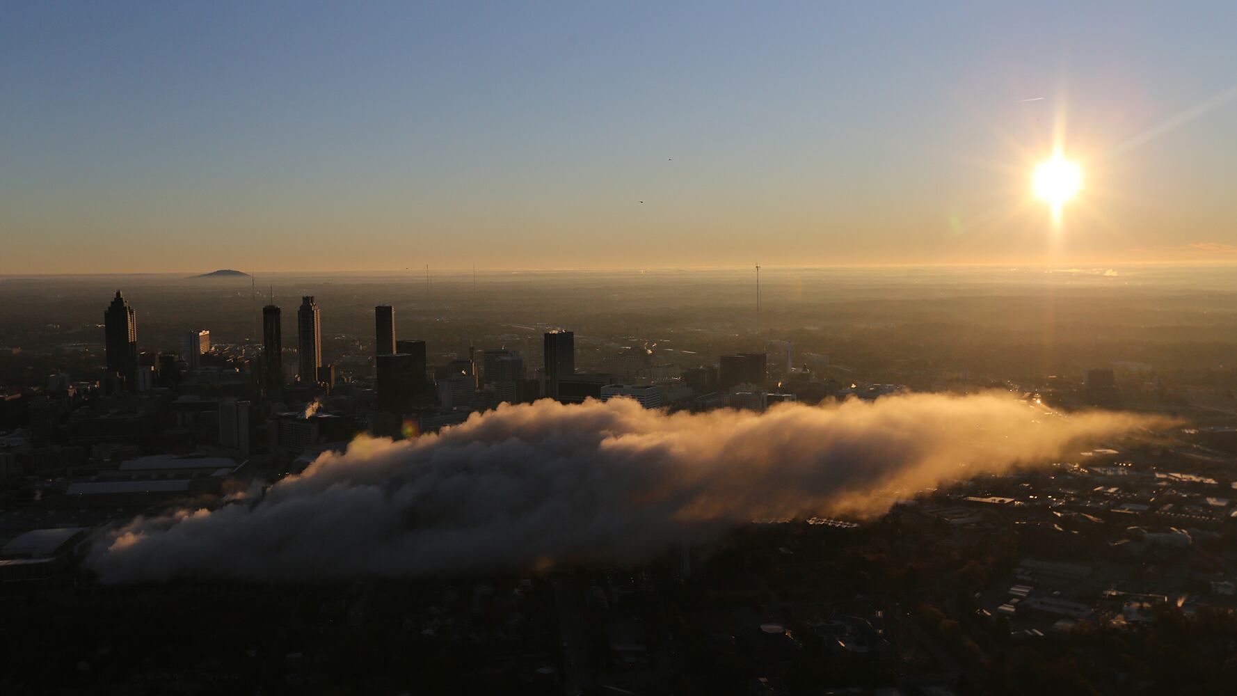 A MARTA bus stops in front of a cameraman just as the Georgia Dome is about to come crumbling down, blocking The Weather Channel’s shot.