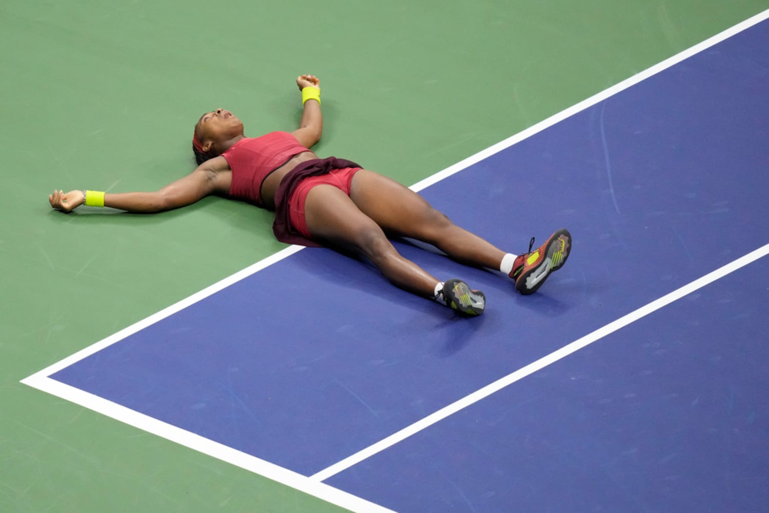 When they resumed, Sabalenka broke to get within 4-2. But Gauff broke right back, and soon was serving out the victory, then dropping onto her back on the court. She soon climbed into the stands to find her parents.