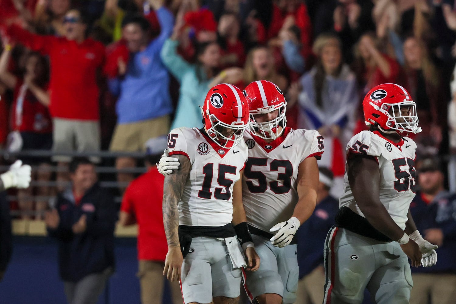 OXFORD, Miss. — Ole Miss survived playoff elimination, and now Georgia gets to face a similar situation after the No. 16 Rebels knocked off the No. 3 Bulldogs 28-10 before a record crowd of 68,126 on a rainy night at Vaught-Hemingway Stadium.