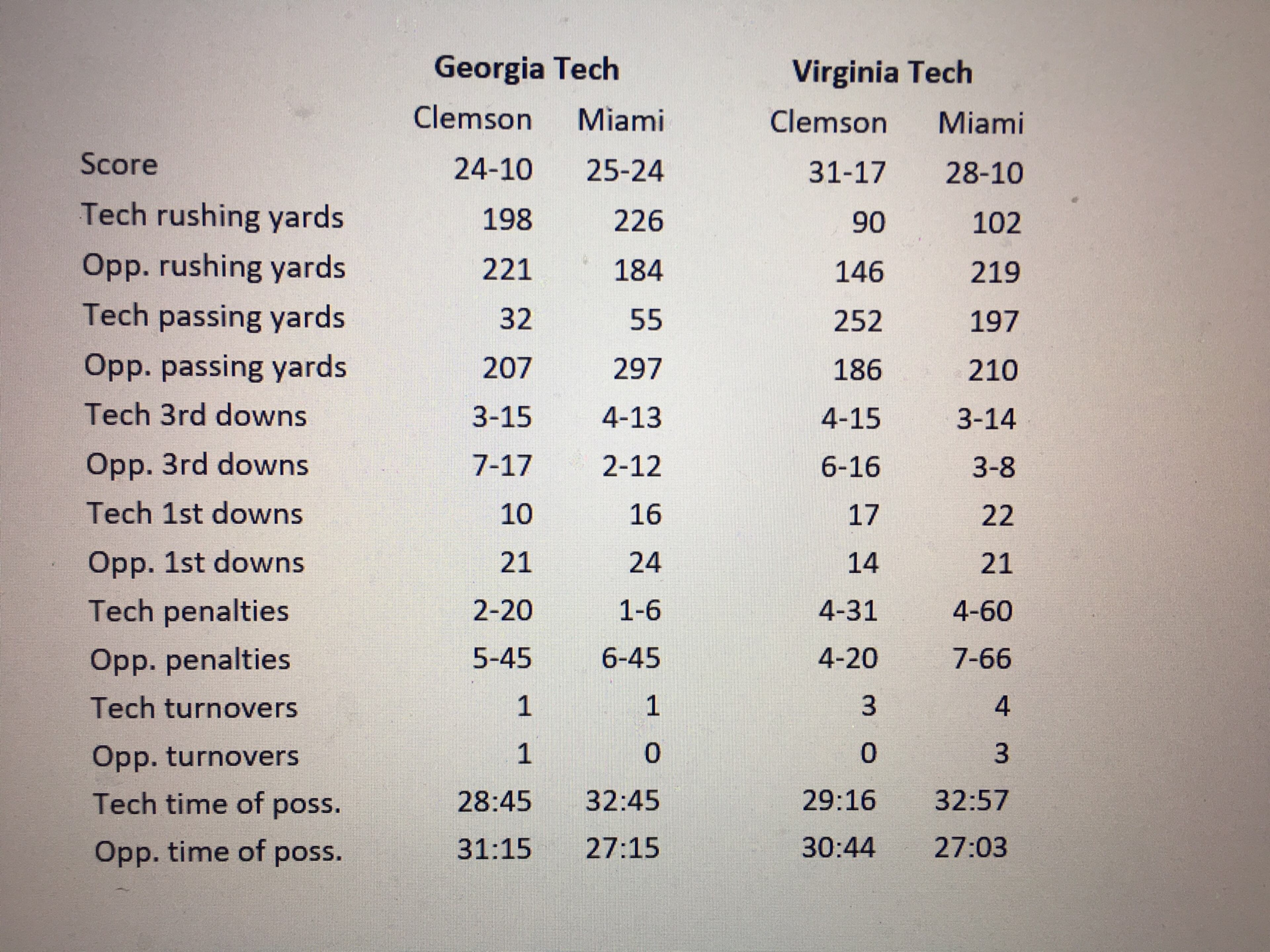 What’s interesting is why the Tigers and Hurricanes were able to run, they weren’t as successful as one might expect on third downs.