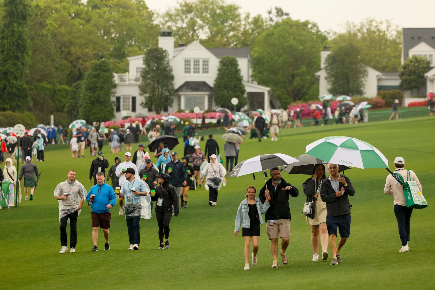 First-round morning tee times during the 2024 Masters were delayed for an hour by rain. The rest of the tournament was played under mostly sunny skies, with temperatures in the high 70s for the final round on Sunday.
