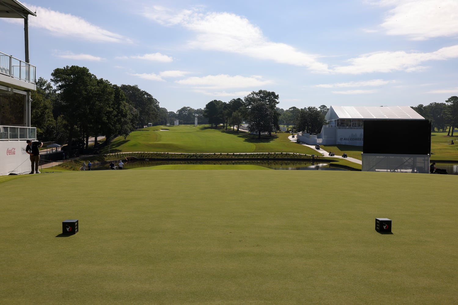 The near year-long project is done, although workers were scurrying about the course Monday in anticipation of the arrival of the final 30 golfers remaining in the playoffs. Patrick Cantlay was the first on the course getting in work Monday morning.