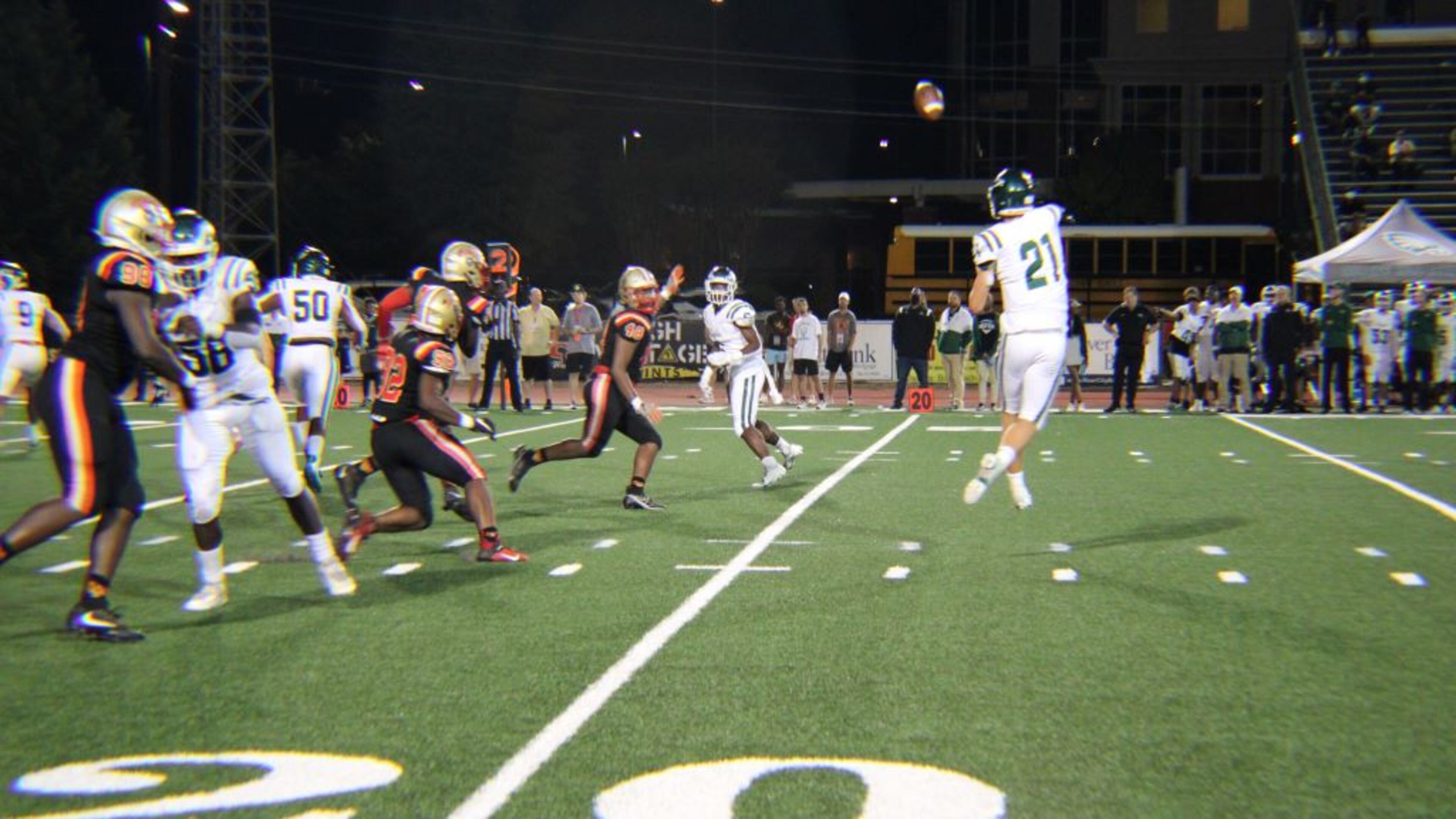 Collins Hill opted for a pop-up onside kick to start the second half and recovered, and the Eagles finished the drive on a 4th-and-goal from the 1-yard line as Horn tossed to running back Ryan Stephens for the touchdown rush. Collins Hill then scored a two-point conversion as Horn rolled out and found Dion Crawford, a linebacker in on the special-teams play, in the end zone. Collins Hill finished the scoring at the 4:41 mark of the third quarter on a 3-yard pass from Horn to Anderson.