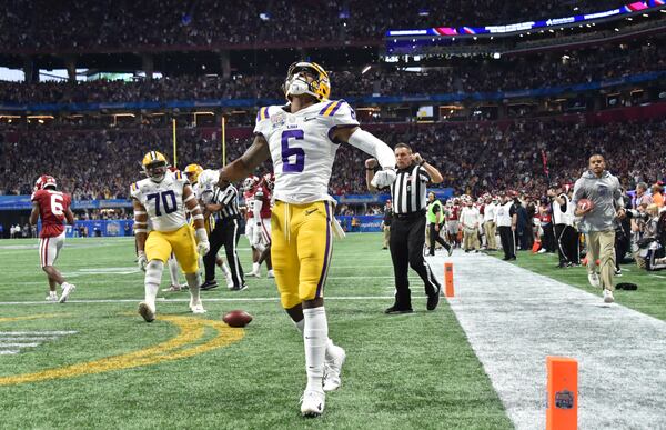 Are there deeds done in a relatively new building that may never be seen again, even if this one stands longer than most in Atlanta? When the great scoring floodtide was done, Burrow had thrown for his seven touchdowns before catching his breath in the second half, and Justin Jefferson had caught four of them (both Peach Bowl and New Year’s Six bowl records). As Jefferson kept screwing Oklahoma defensive backs into the artificial turf, totaling 227 receiving yards, it was difficult to keep in mind that he is but this team’s co-headliner at wide receiver (the other being Ja’Marr Chase, who leads the country in receiving touchdowns).
