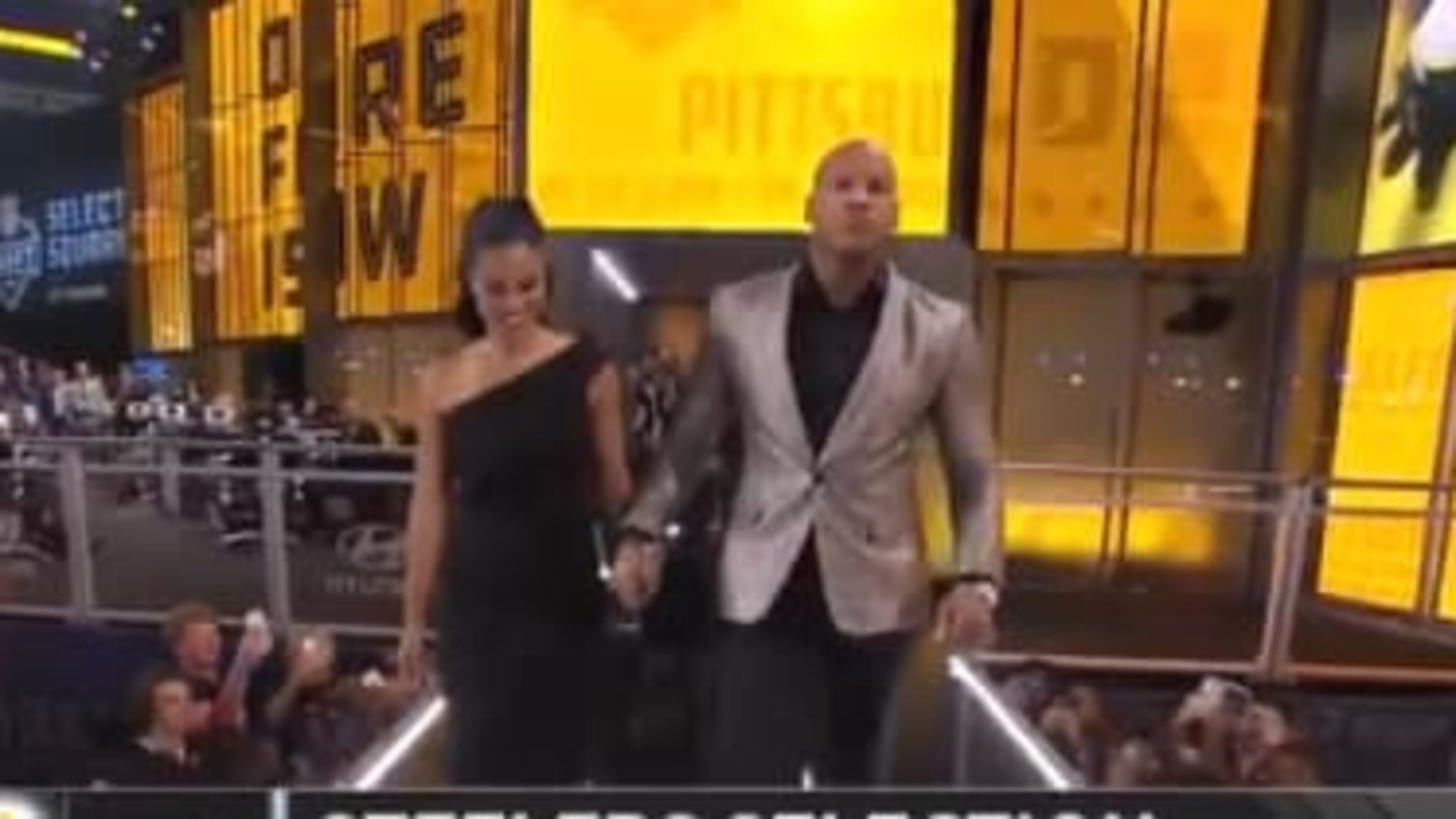 Shazier, 25, walked on stage holding hands with his fiancée Michelle Rodriguez and announced the Steelers first round Draft pick.