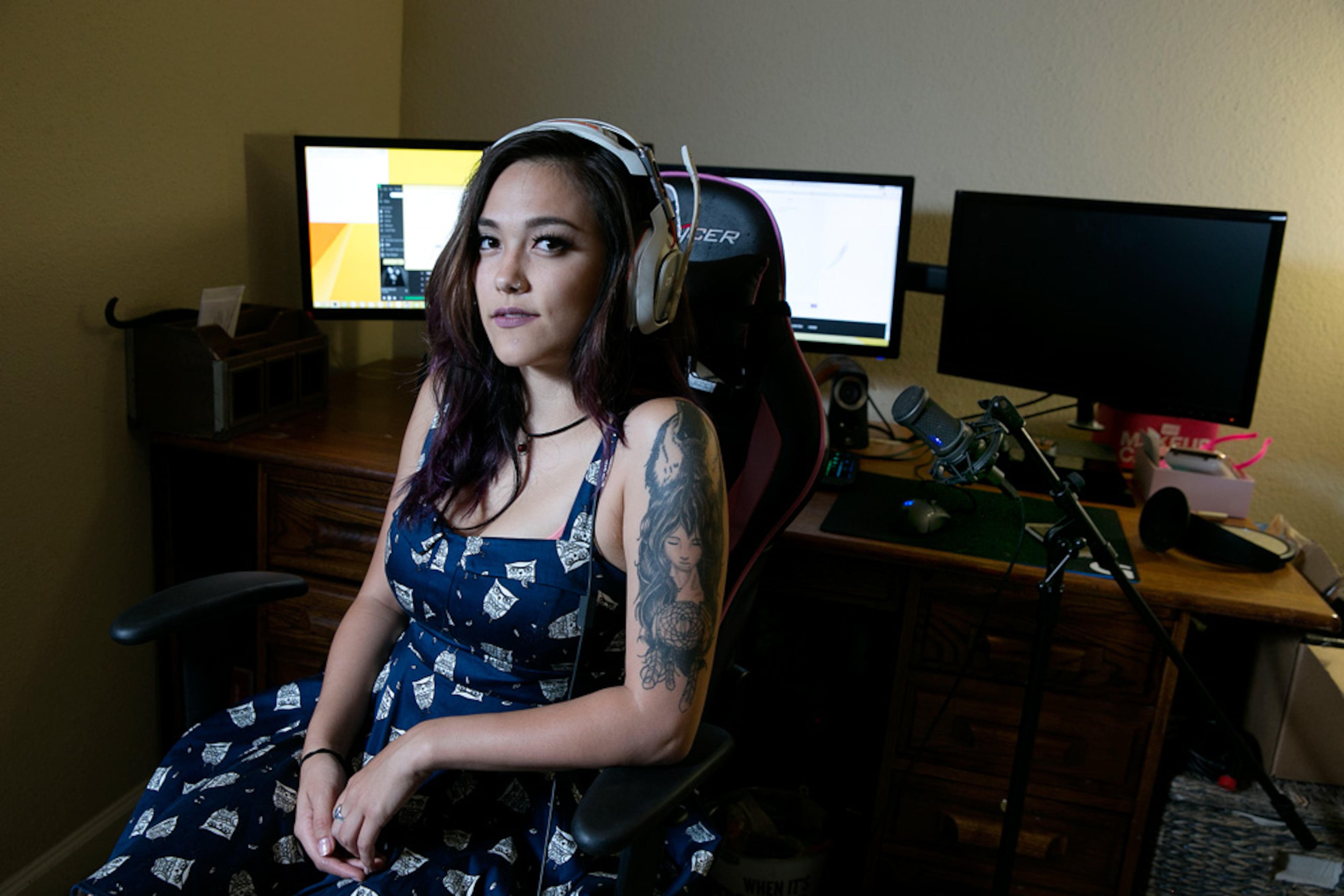 There are dozens, perhaps hundreds of people playing "EVE Online" and streaming it online for others to watch. But unlike most of them, Ford has been able to make a living doing it, partnering up with sponsors such as Muxy.io and using subscriber and tip jar money from viewers to upgrade her hardware (three monitors, a powerful gaming PC, studio lighting and more).