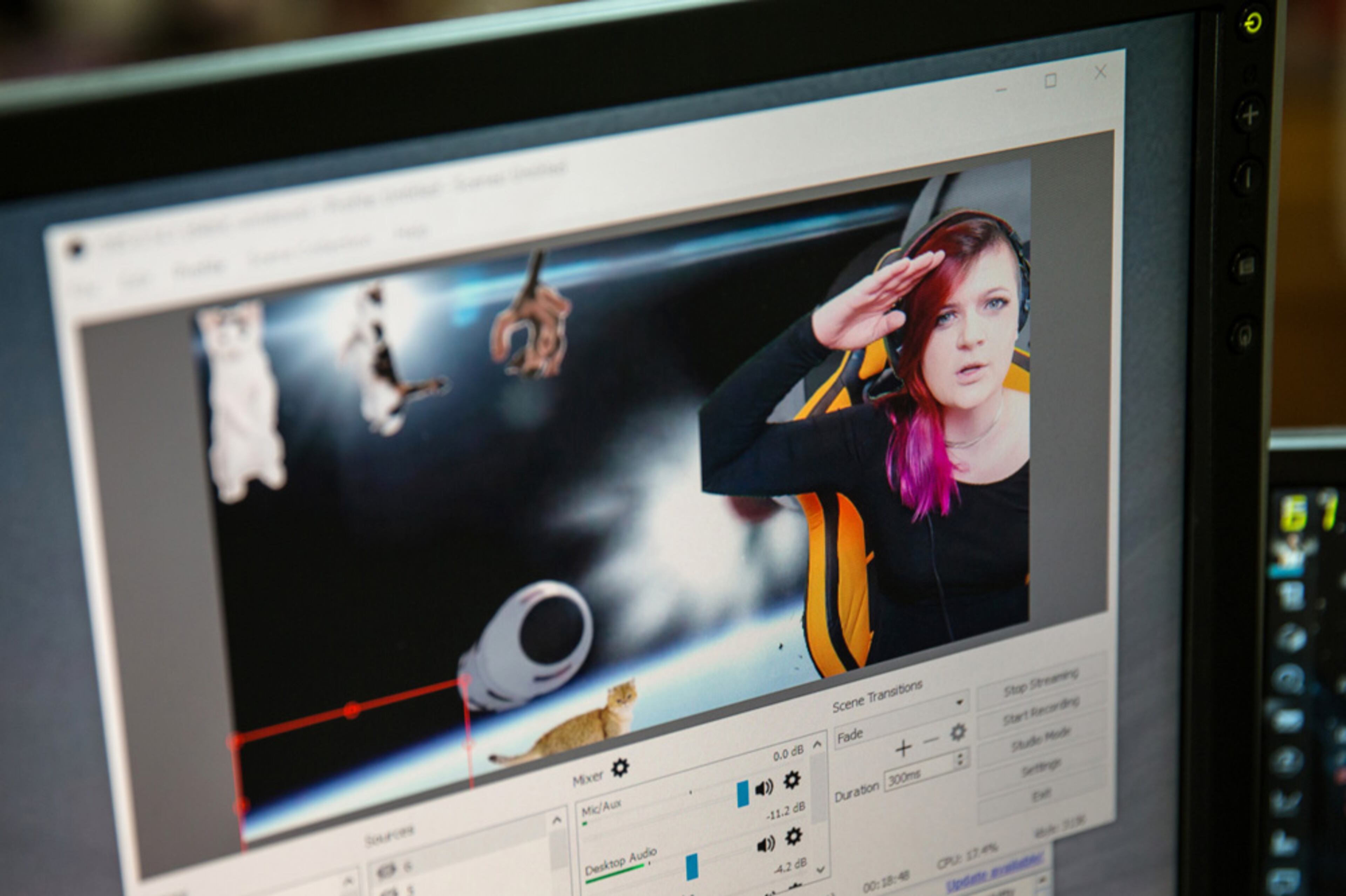 Another subscriber, Voltage Fatso, signs on for two months. A viewer drops $2 in her tip jar. Players transfer chat currency to watch Oxana the cat give high fives for treats. Ford never stops talking, even as she's playing the game, keeping an eye on the chat stream, and making adjustments to her feed. She's high-energy, bouncing in her chair as her image appears superimposed on a roam mission in "EVE." Another subscriber signs on. Then another, Legendary Muffins.