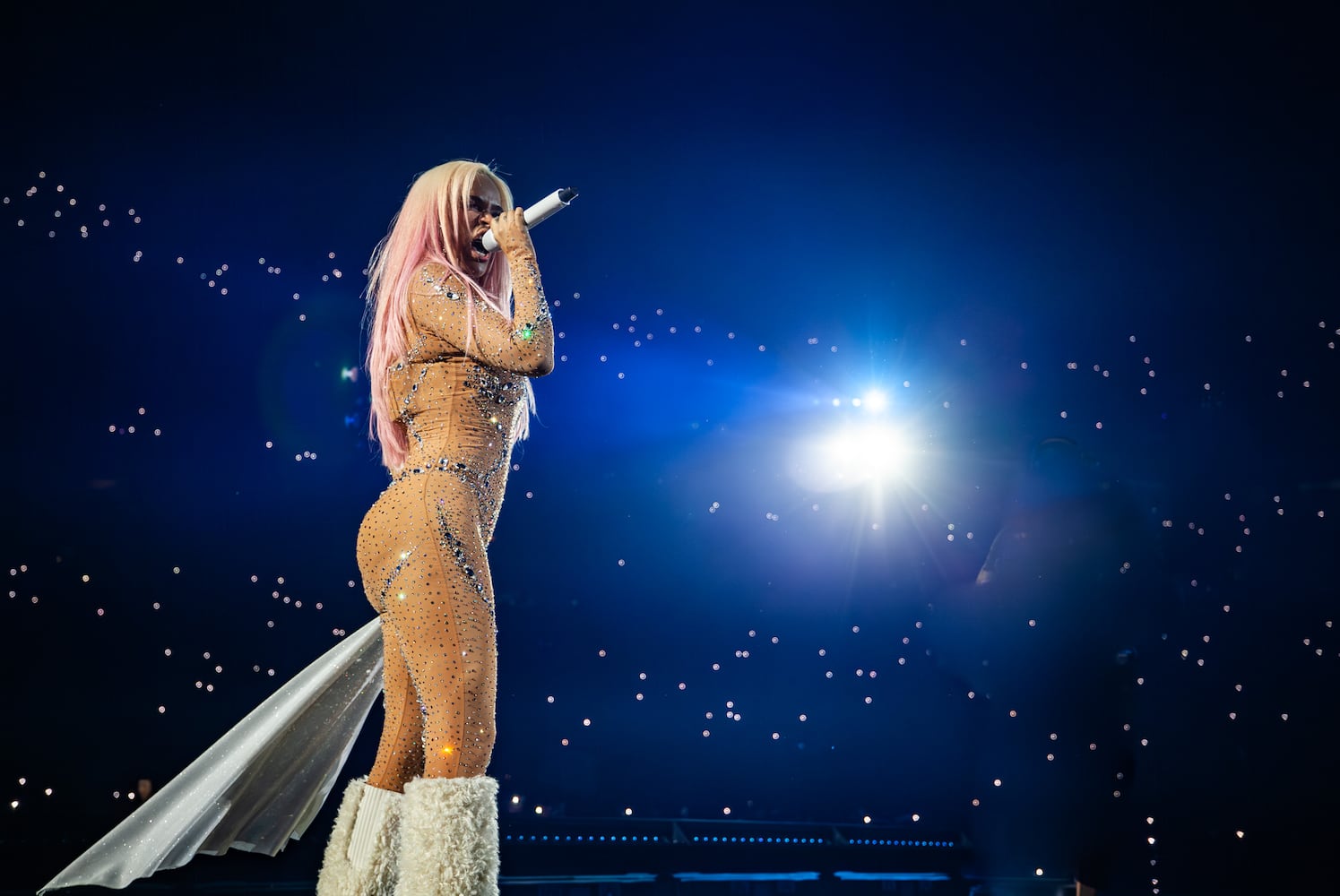 Rapper Young Thug performed Tuesday at State Farm Arena. It was the Atlanta artist’s first major hometown show since his release from jail in October 2024.