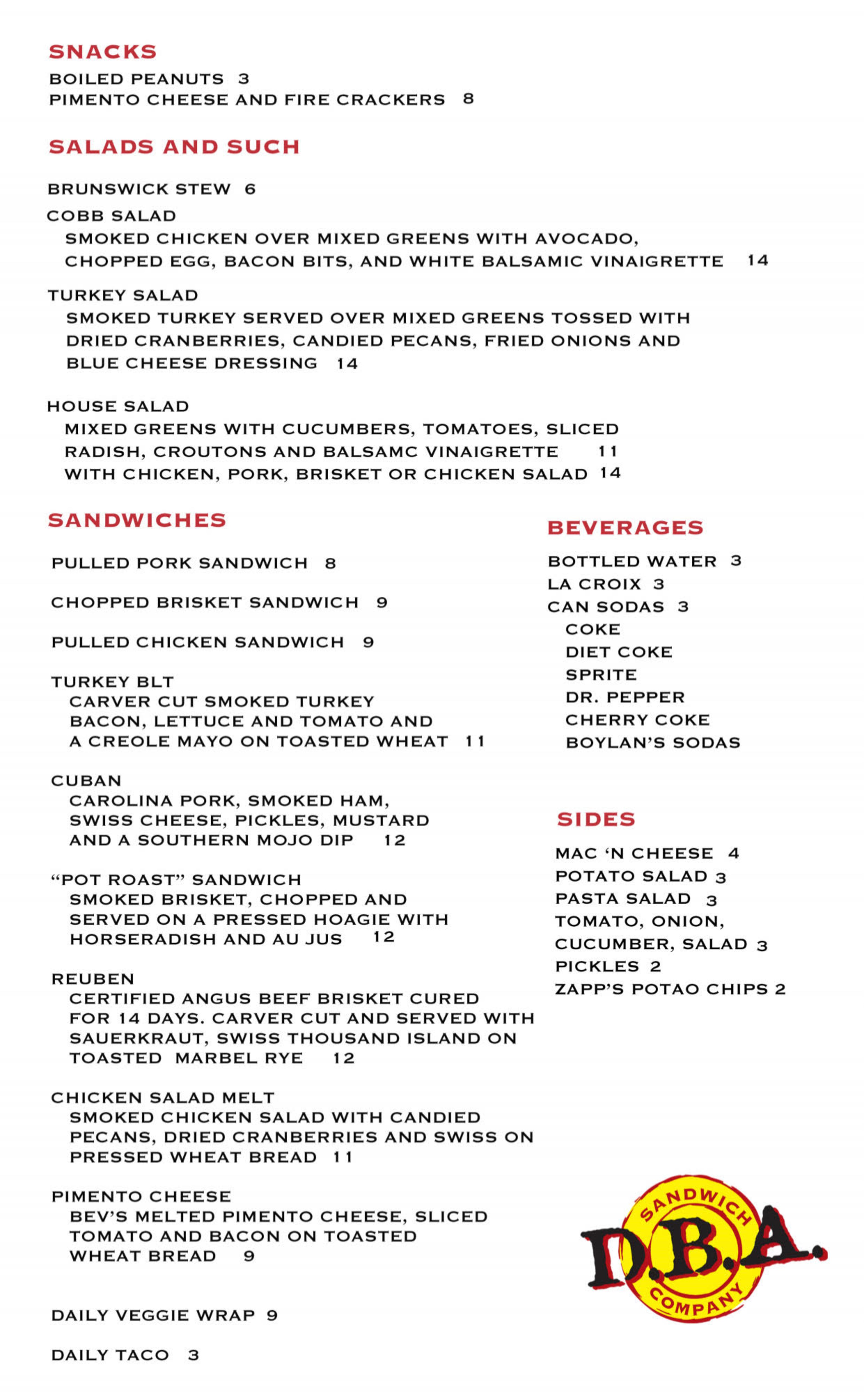 Scroll down to see the full menu for D.B.A. Sandwich Company: