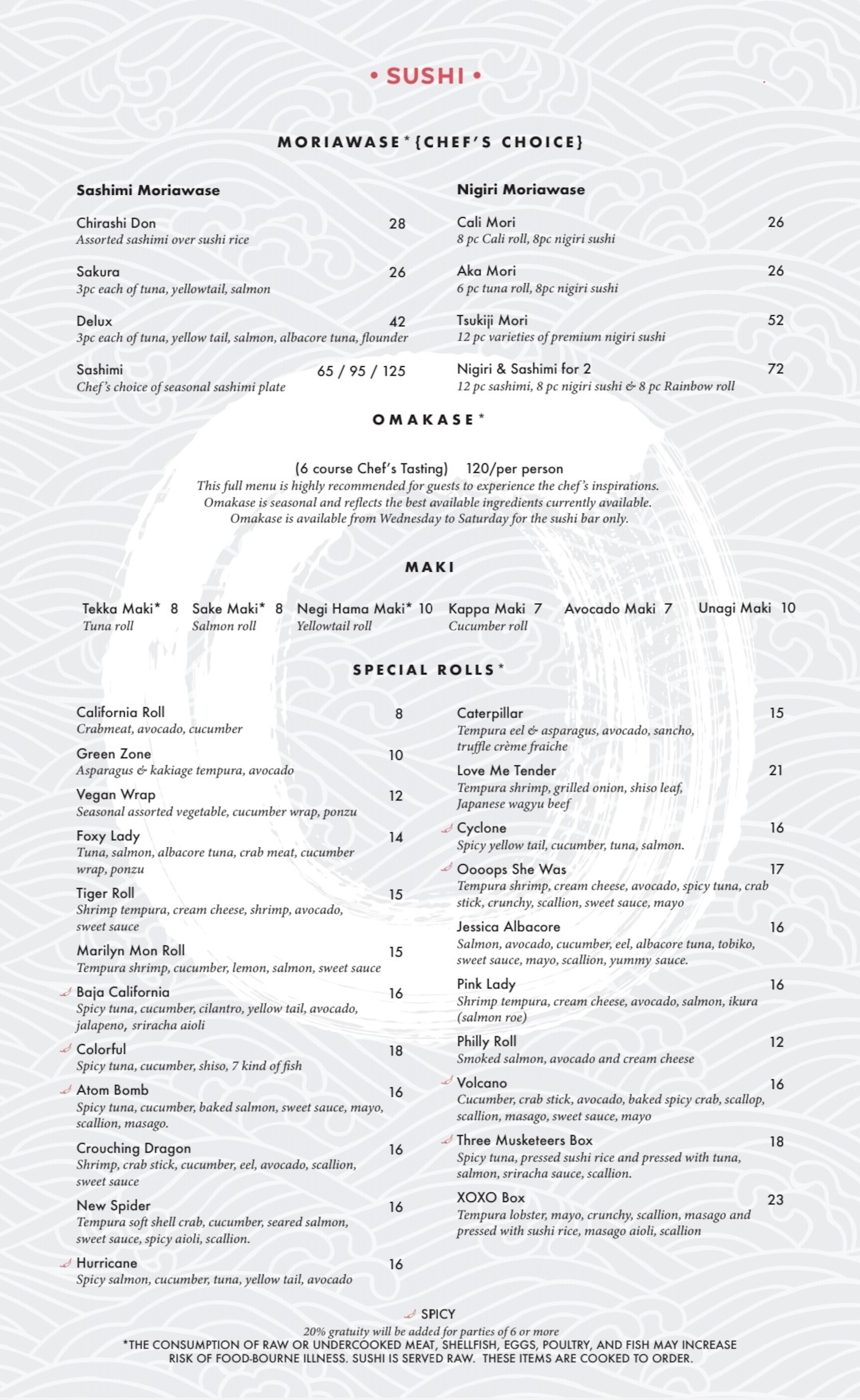 An area dubbed the “sushi boat” focuses on Chang’s sushi menu, with nigiri and sashimi, ramen, Japanese small plates, entrees and specialty rolls . The sushi boat also offers a six-course chef’s tasting omakase.