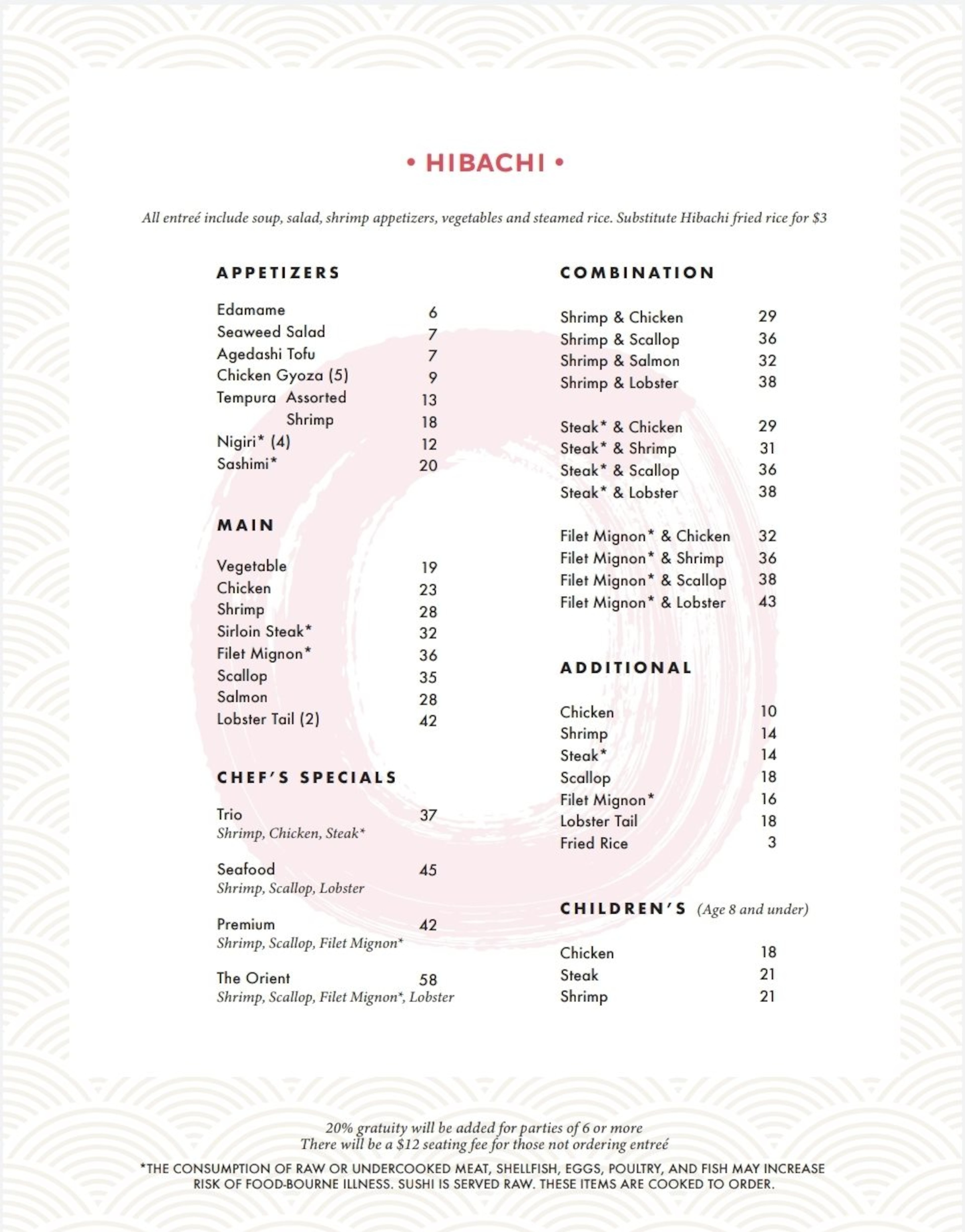 Check out the menu for the Orient, now open for sushi, hibachi in Cobb County