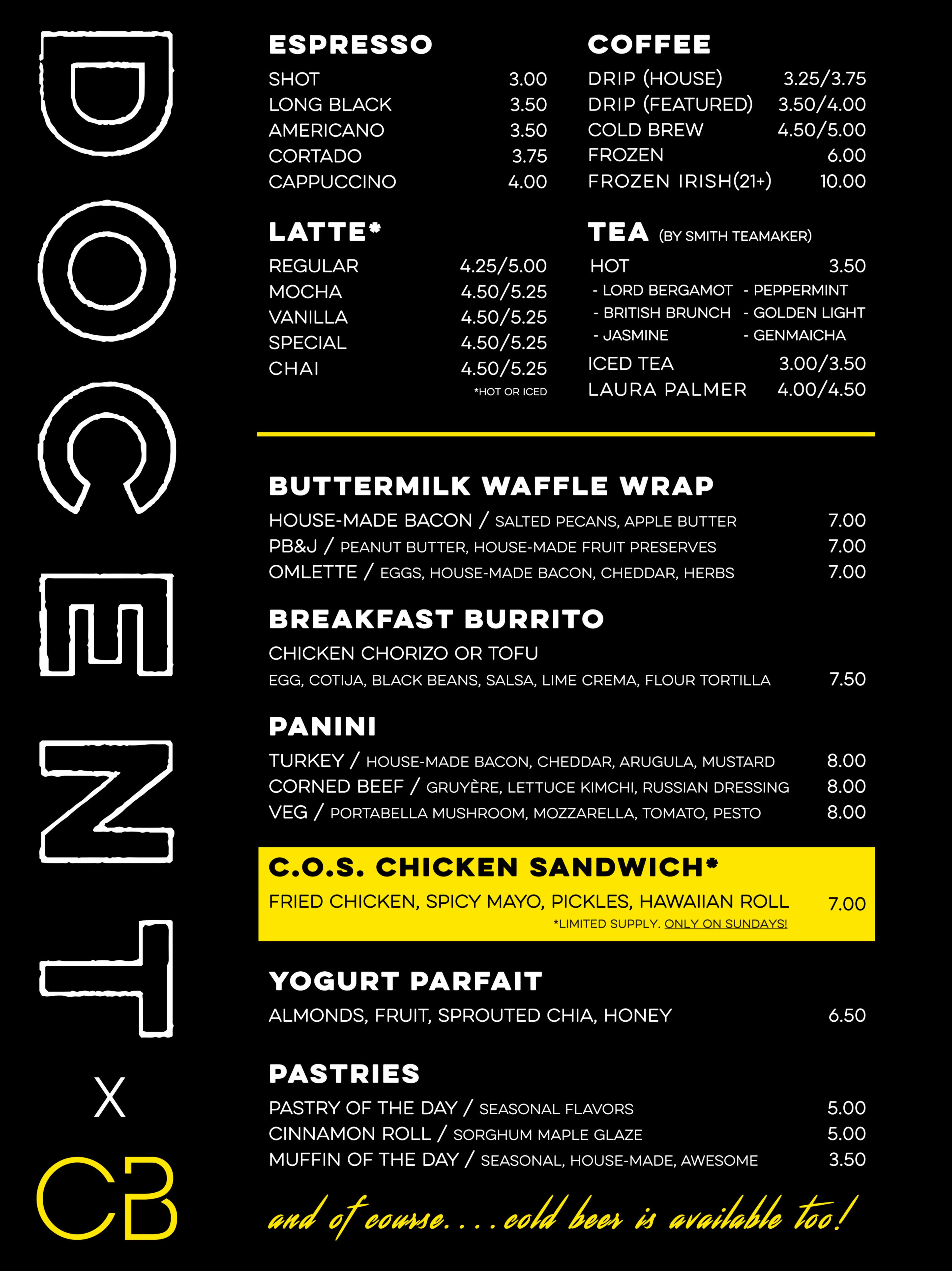Scroll down to see the full menu for Docent x CB: