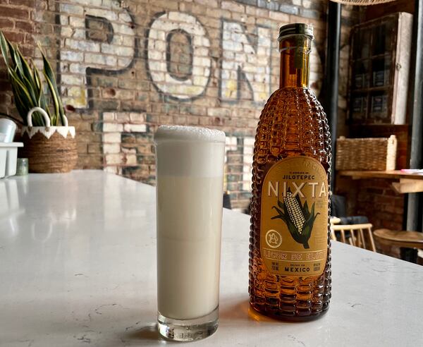 Nixta’s golden bottle, shaped like a bumpy corn cob, is the most asked about of those sitting behind Hall’s bar at Boho115 on Decatur Square. Tasting the liqueur, one encounters a silky mouthfeel and hints of roasted corn’s subtle sweetness, as well as caramel and vanilla.