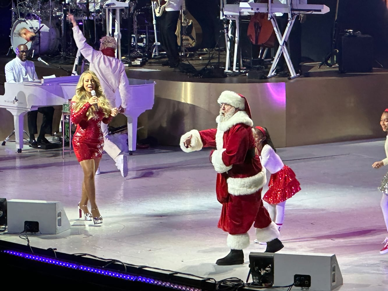 After Santa Claus himself made an appearance throwing out gifts into the audience during “Here Comes Santa Claus,” Carey came out in a fresh dress. She noted that when she first started touring a Christmas show a decade ago, she stuck exclusively to holiday tunes. But her agent suggested she throw in some legendary non-Christmas tunes as well. She agreed.