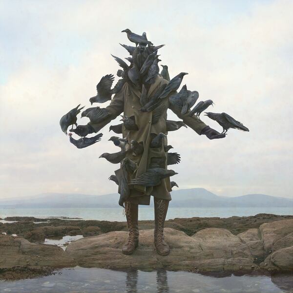 The artist creates haunting works on the precipice between the human and the wild, often staging his dramas at the ocean’s edge to comment on environmental degradation where he lives in Dakar, Senegal. Monteiro creates hybrid creatures combining elements of the natural world and the human one as in his photograph “Prophecy #8″ where his monster wears a face mask and headdress that look forged from tar and oil slicks and drags plastic fishing nets out of the ocean, plastic bottles of detergent caught up along with a horseshoe crab. It’s a disturbing image of feckless human destruction of nature that Monteiro has observed firsthand in the ravaged, polluted landscape of Dakar.