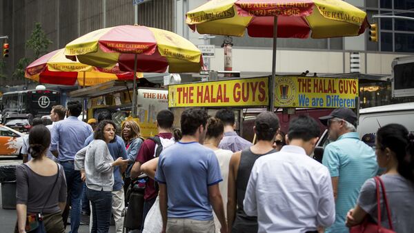 - The Halal Guys. This summer, the famed street food cart that started in midtown Manhattan-the cause of lines that can stretch down the block in the middle of the night-opened in Vegas on Spring Mountain Road. From 10 a.m. to 4 a.m., Halal Guys offer the same sublime chicken and/or gyro platters and sandwiches with the option of their mouth-burning hot sauce.