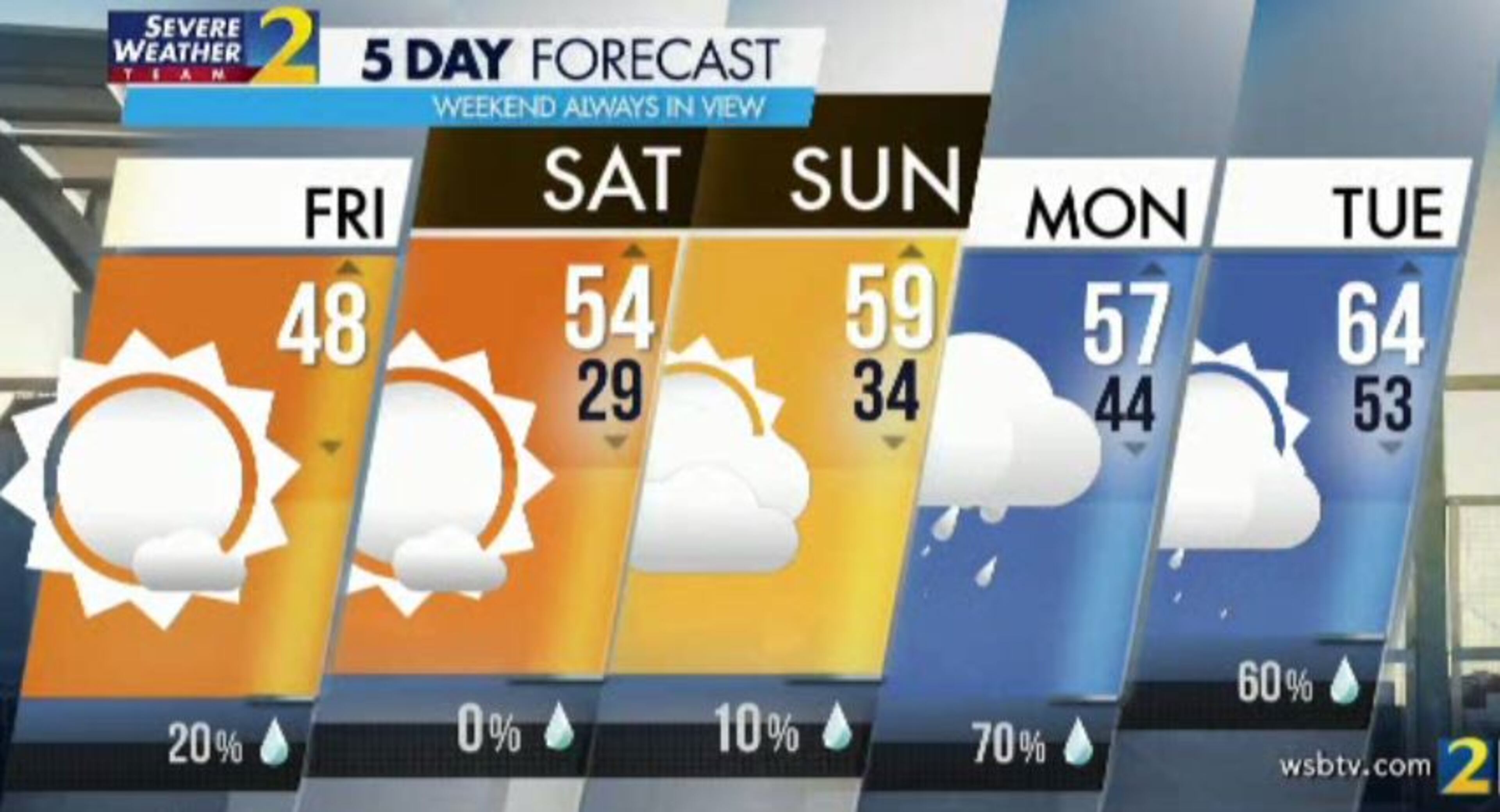 » For a detailed forecast, visit The Atlanta Journal-Constitution weather page.