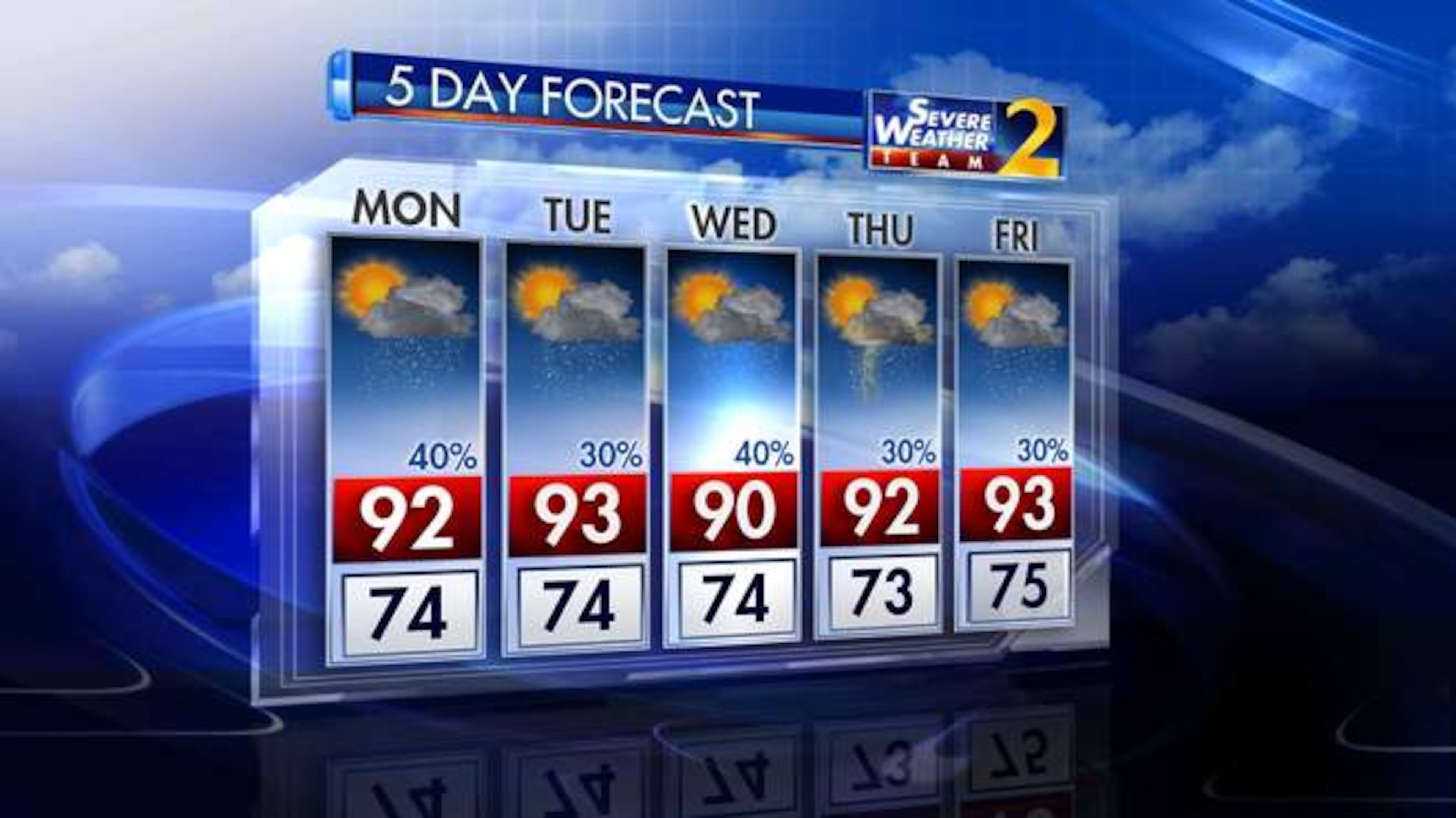 The pattern of heat and daily storms should continue, according to Channel 2. Forecasts for the next four days call for highs in the 90s, above the average high of 88 for this time in June.