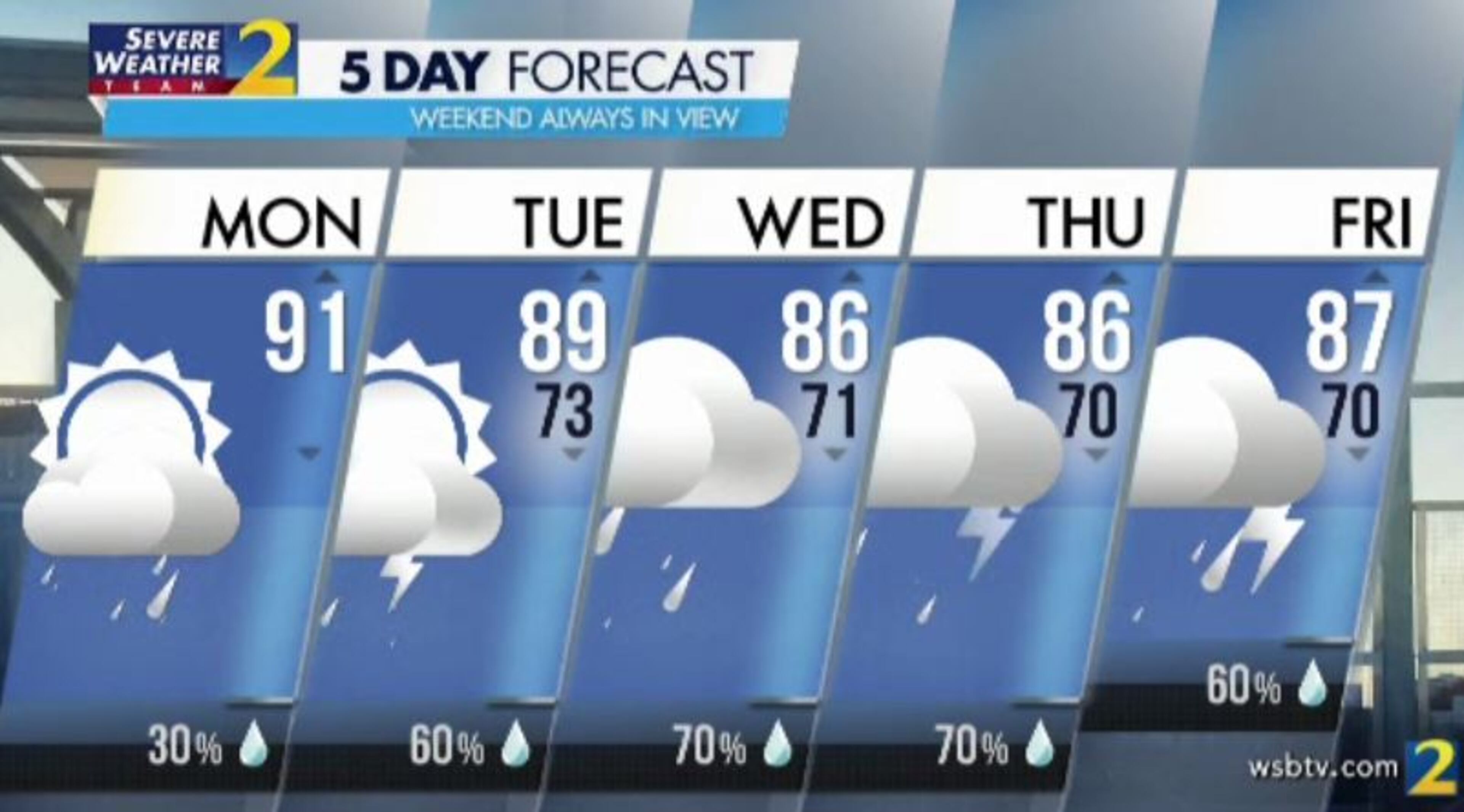 The increased rain coverage will help North Georgia to cool off slightly. High temperatures fall back into the 80s as rain chances come up to 60% and 70%, according to Channel 2.