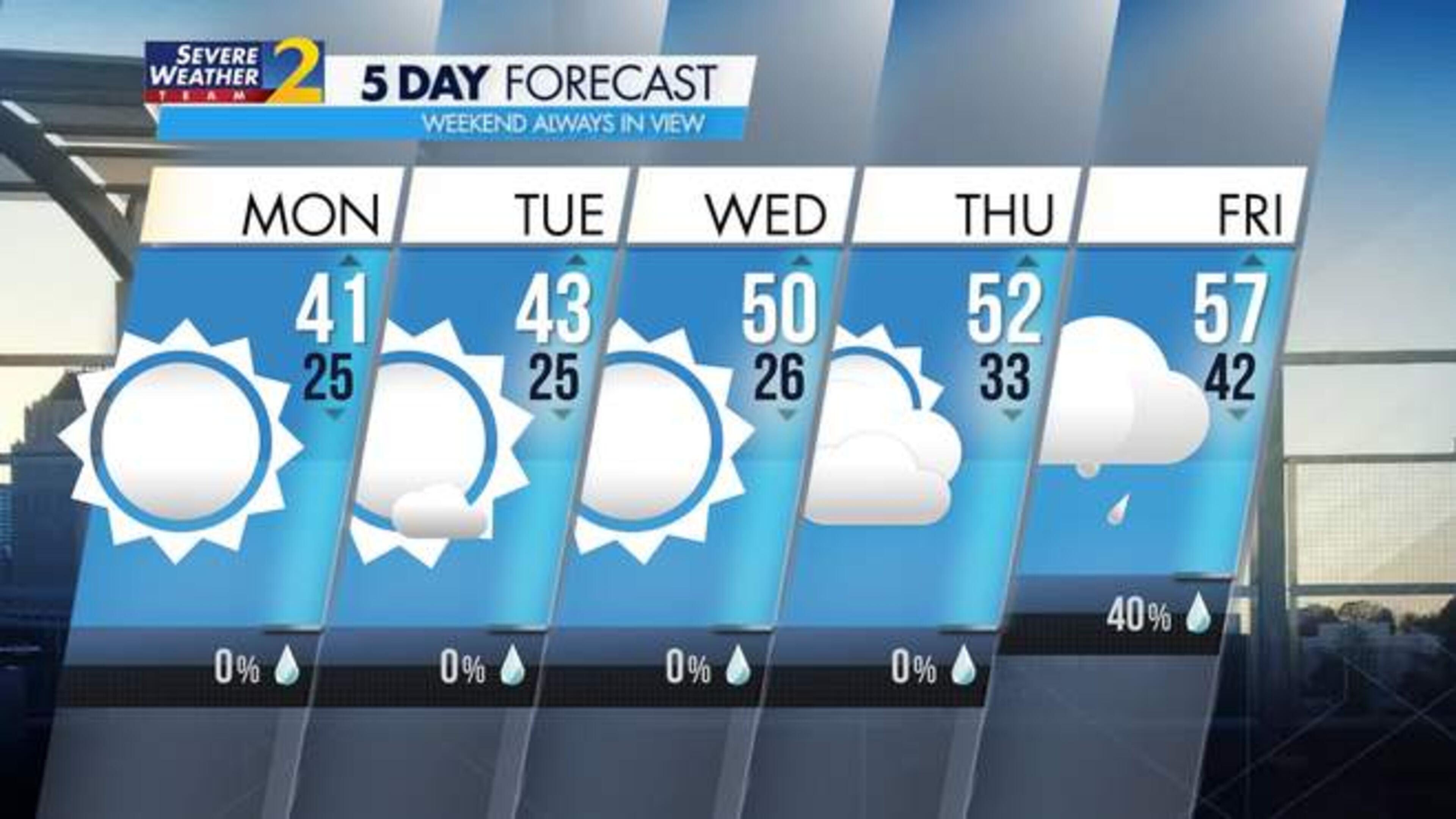 The day will start off with temperatures in the 20s and 30s, according to Channel 2 Action News Meteorologist Katie Walls.