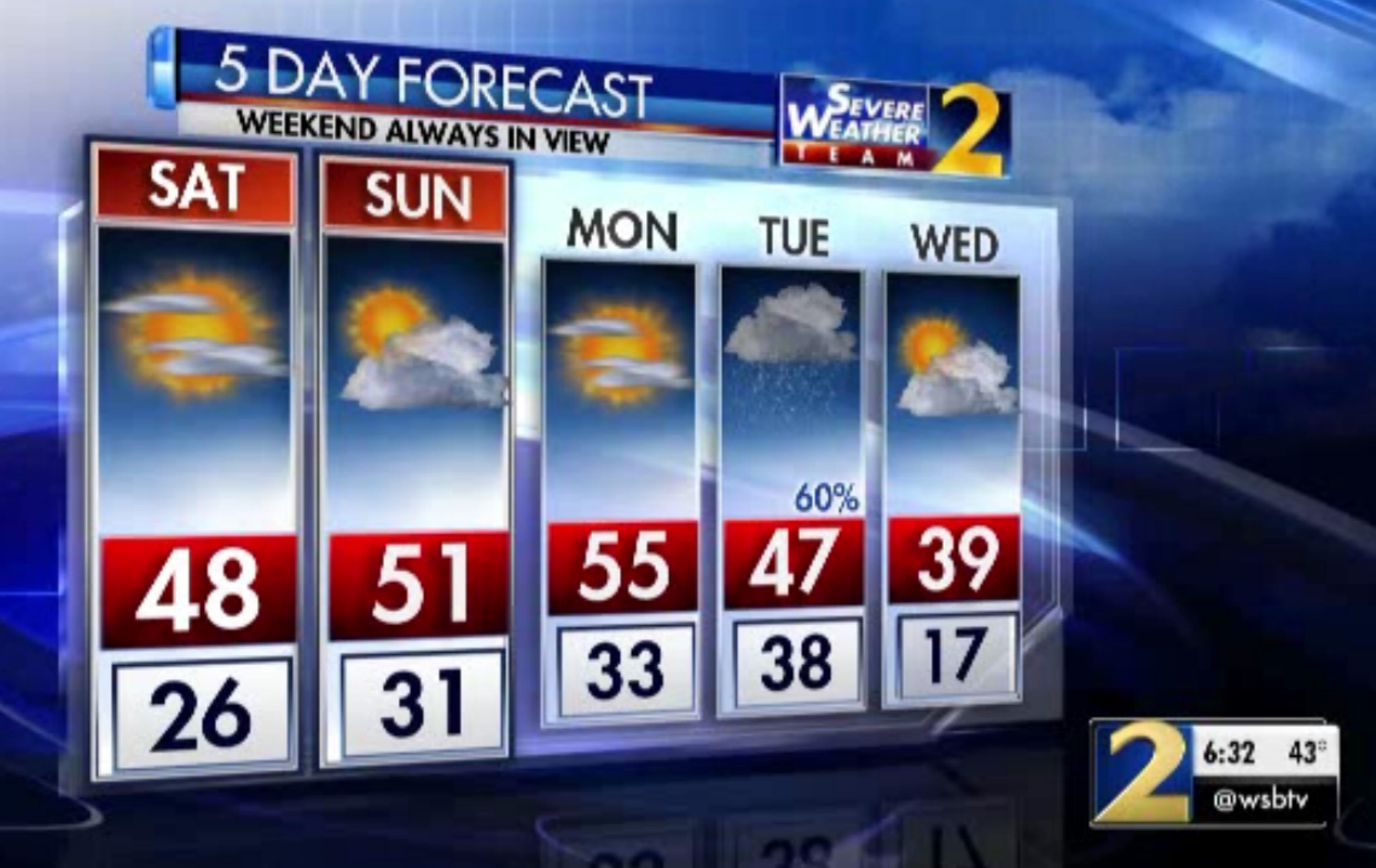 » For a detailed forecast, visit The Atlanta Journal-Constitution weather page.