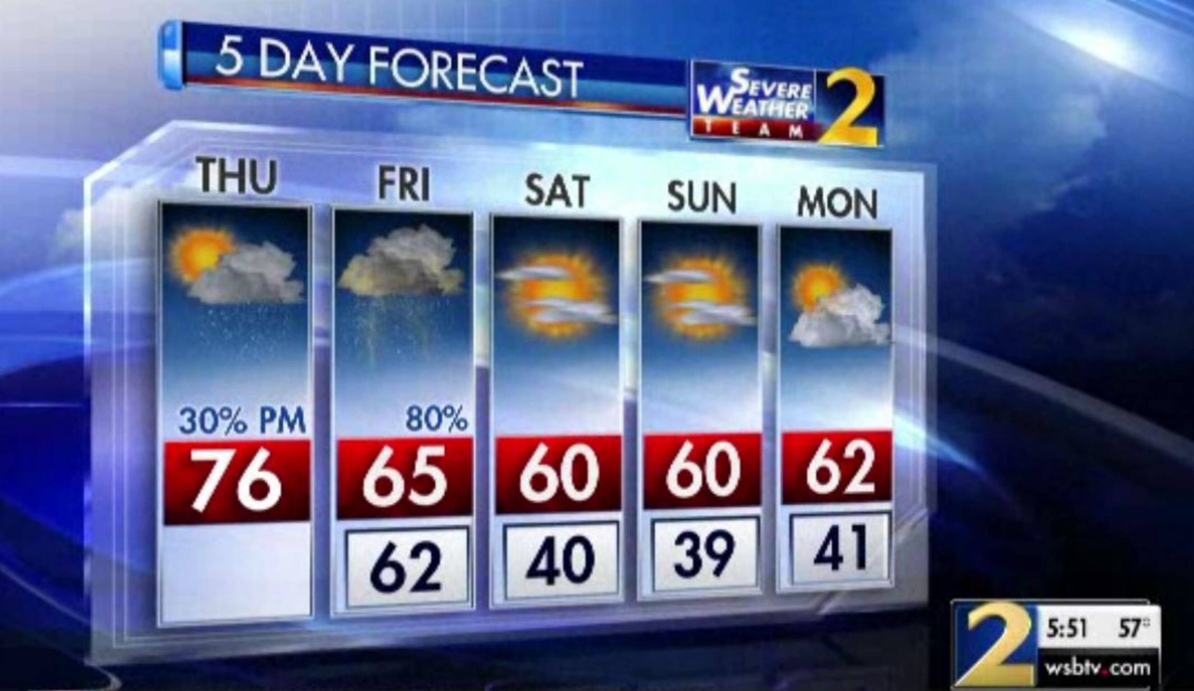 » For a detailed forecast, visit The Atlanta Journal-Constitution weather page.
