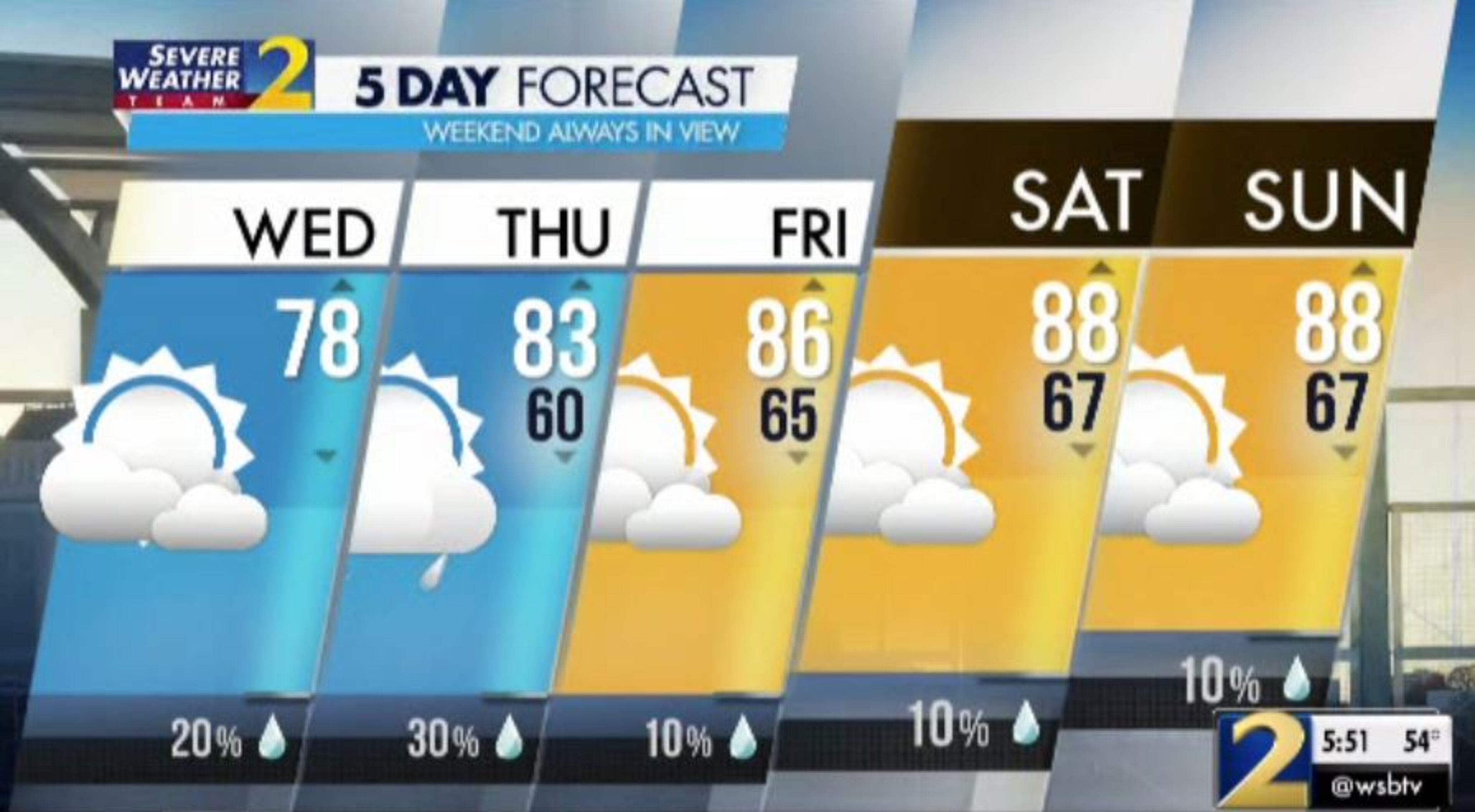 » For a detailed forecast, visit The Atlanta Journal-Constitution weather page.